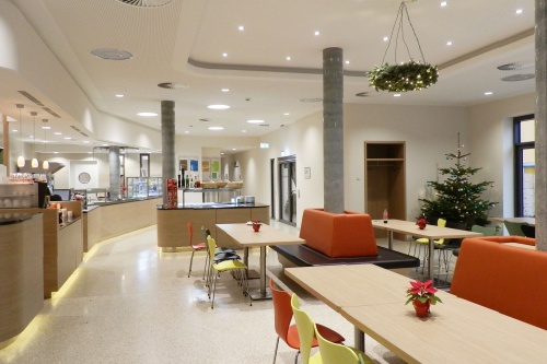 The modern structure fits in with the ensemble of the predominantly historical buildings at the Altona Children’s Hospital (AKK) through the building materials used, primarily clinker brick with a connecting glass band. The centre of the new building is the open cafeteria with different seating areas and is more reminiscent of a modern cafe than a hospital canteen. Before the construction, food had to be driven across the city to the AKK, but now it can be freshly and healthily prepared for all patients, parents and employees.